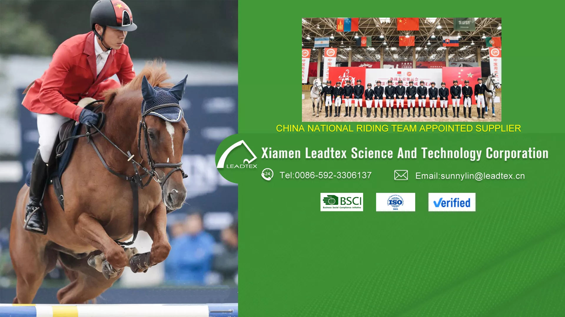 XIAMEN Leadtex,founded in 1994, is a leading OEM Manufacturer of Equestrian ,Riding and Pet Products in China. We are located in Xiamen, with a construction space of over 25 000 square meters, 222 staff . Our products have been sold to every corner of the world , USA, Germany , UK, Denmark , Sweden, Belgium , Brazil , etc. Our customers vary from top well known brands to newly built stores .Besides, we are taking our responsibility to help boost the equine industry in China .We are official supplier and partner of Chinese Equestian Associatioon /CEA .We sponsor the Equine and riding products for our National Team and many Top eventings and top Riders in China .